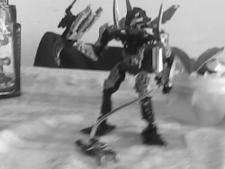 el lleva una lanza de poder con lazer,tambien lleva la mascara de la inmortalidad
