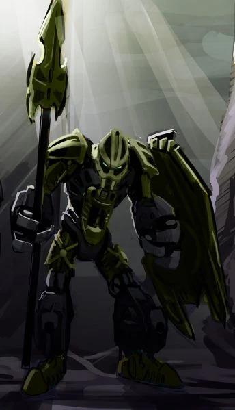 Entranced by Teridax's illusion for almost his entire usurpation of the Matoran Universe, Toa Bomonga sparingly patrolled the western districts of Metru Nui and continued to take inventory of the various Rahi species residing in the area, oblivious to the Rahkshi squadrons and labors of captured Matoran.