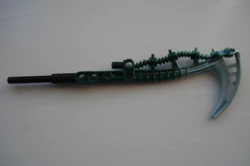 The Jungle Scythe Spear is bladed weapon wielded by the Skakdi warlord Freztrak. It can be used to access his elemental powers of the Green independent of another Skakdi, due to modifications made by the Order of Mata Nui.