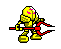 Kikka got himself a Guard Spear from the Musterdia Weapons Hut when the group visited there. After that, the group went with their Kahus towards the temple of Comic Land. Kikka didn't have his own Kahu so he had to ride with Ura. Upon Bz-Metru, an army of Grandeg's Robots attacked, shooting down all of the group, which however survived. Kikka was saved into one of Grandeg's Airships, which had been taken over by good guys.