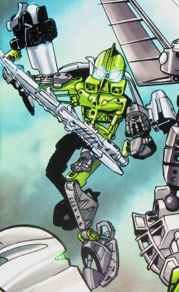 After some time, Lewa encountered two wandering Matoran from Ta-Koro, named Jaller and Takua, in the jungles of Le-Wahi being cornered by an Ash Bear. Jumping from a nearby tree, Lewa was able to deescalate the situation and liberate the Ash Bear, before confronting the two Matoran about word of their recent expedition to find a prophesied seventh Toa. Summoning a Gukko, Lewa accompanied the two Matoran to Ko-Wahi before catching wind of a devastating assault on Ta-Koro. Travelling to personally investigate, Lewa instructed the Matoran to continue their journey, carrying word of the expedition back to Tahu and Turaga Vakama.