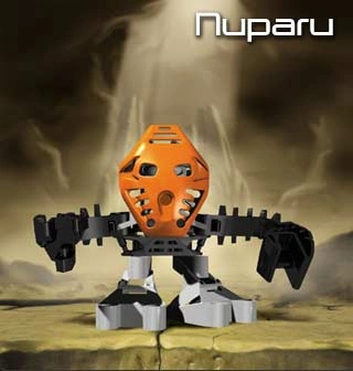 Nuparu was among a number of Onu-Matoran villagers who witnessed the arrival of Toa Onua in Onu-Koro. With the Toa Mata arriving on the island, the Rahi attacks increased in their frequency, prompting the Onu-Matoran to defend their village from threats such as Kofo-Jaga, Fikou, Vatuka and Manas with limited success. When the Toa succeeded in their quest to collect their Golden Kanohi and descended into the Mangaia tunnels, Nuparu joined the Onu-Matoran strike team that arrived in Kini Nui to defend the entrance from the Infected Rahi. In one final battle, the Matoran emerged victorious, finally freeing the Rahi from Makuta's mental influence and restoring balance to Mata Nui in the process.