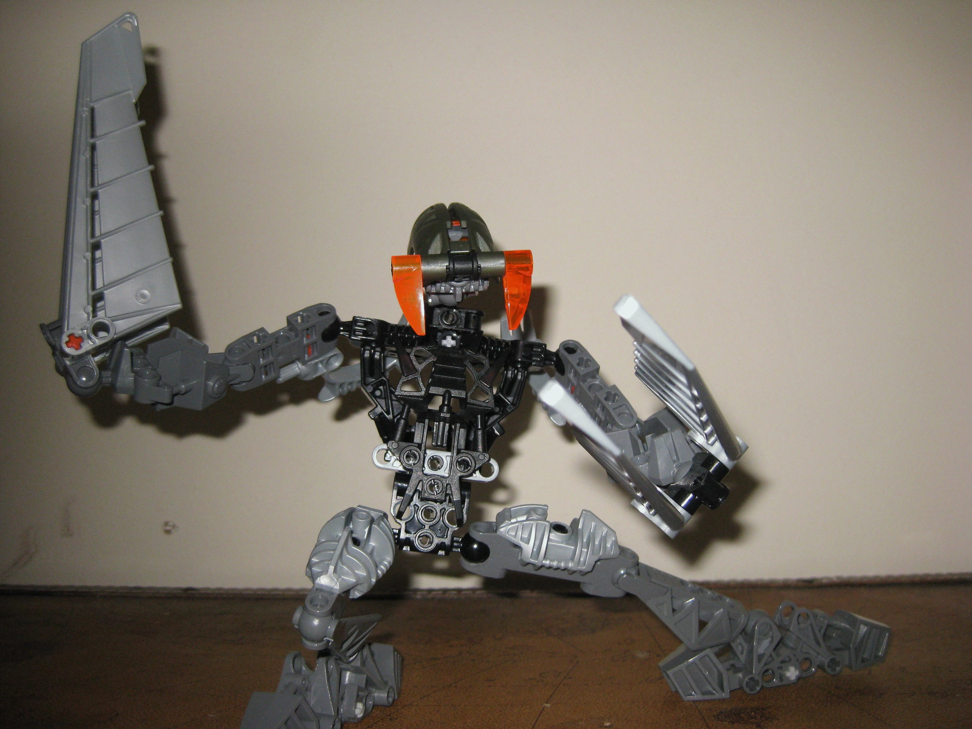 He possesses the Kanohi Taiku, Mask of Poison, which amplifies his Poison power. He has two Poison Claws for use as weapons.