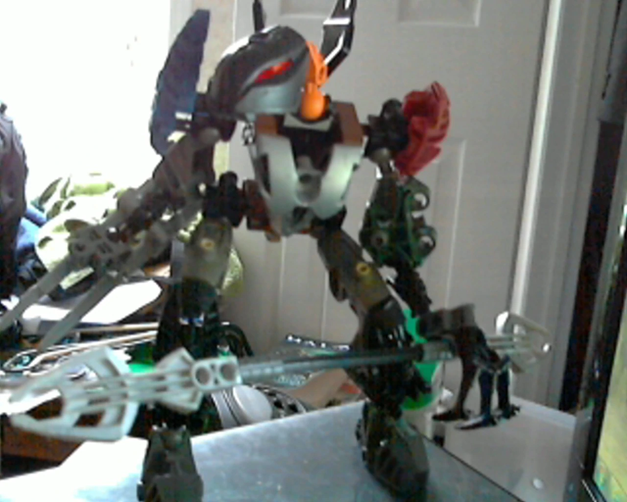 Guurahk Staff, Claws on left hand, Teridax Staff Double-Blade, Proto-Steel Chest Plate, Mata Rifle, Makuta Essence Containers, Antidermis Destroyer