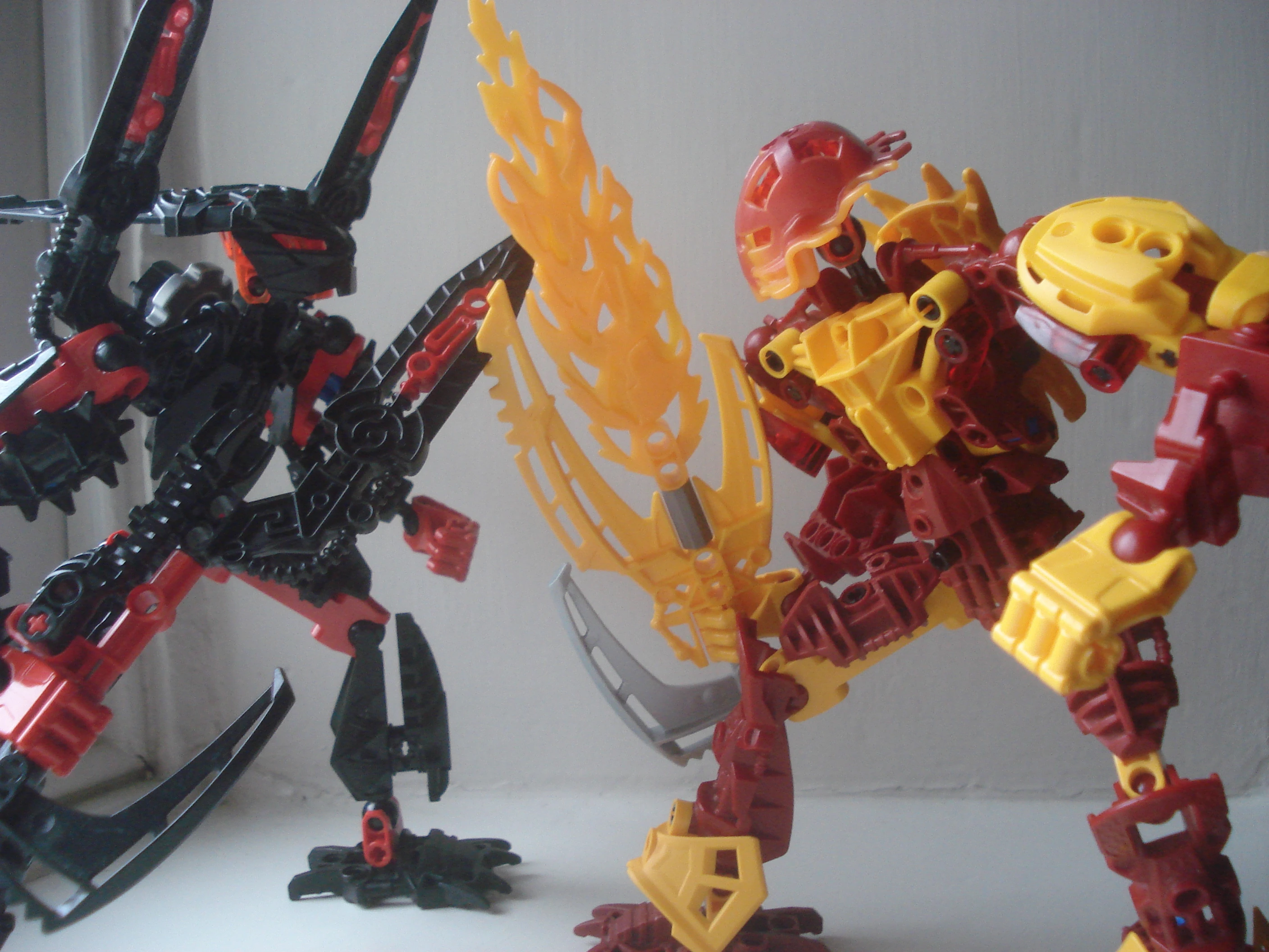 A battle between the titans began and in the conflict, the larger one destroyed a peak of a Black Spike Mountain. Every lifeform there was killed, including any Rock splinter cells present. Another led by Stronius sought to use the chaos to enact vengeance upon the Glatorian for their defeat. One more would steal a piece of golden armor after Teridax blasted it to pieces. Gresh would later defeat their band of Skrall, however, and give it to its intended owner.