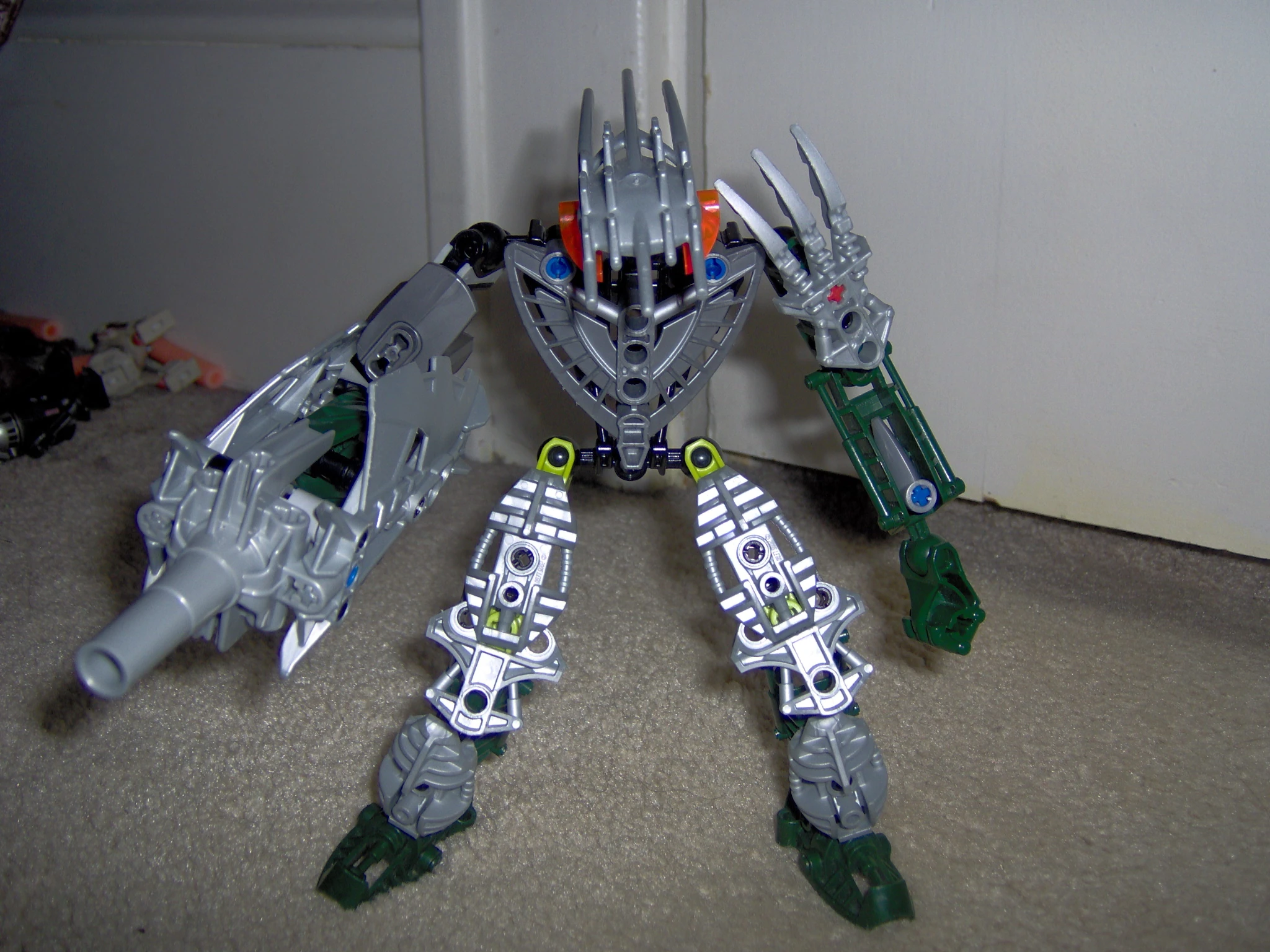 As a matoran, Sador was a blacksmith. He lived in a tiny hut, and was very poor for a Xo-matoran. He lived with his best friend Tablor who helped him through hard times. To Sador, Tablor was like an older brother. Although Sador was the best backsmith, he didn't get very many customers, for Xo-matoran were peaceful, and didn't like metal things very much. He did have some good in his life though. When Tablor and he traveled, he usually got better business, especially when the Piraka Skadi invaded his island. His life was changed when he and Tablor and a female Xo-matoran were out to go to a village to buy metals when they came across a dead body of a Xo-matoran, but it was just his armor! They could tell he had been eaten by some creature for there was blood splattered everywhere. They heard a crack of twigs behing them, and ran for their life. When they came to the village, they told them of the horrid event. One month later, Xo-Matoran started to disappear quickly, so Tablor, the female Xo-matoran, and he fled to another island. There they met a Turaga, and after a year of facing many challenges and hardships, they were made into Toa. The creatures soon found the three toa, and in a fierce battle, Sador and the female Toa of Universe were killed. In a rage, Tablor destroyed every single of the creatures. Sador had fallen in love with the female Toa of Universe.