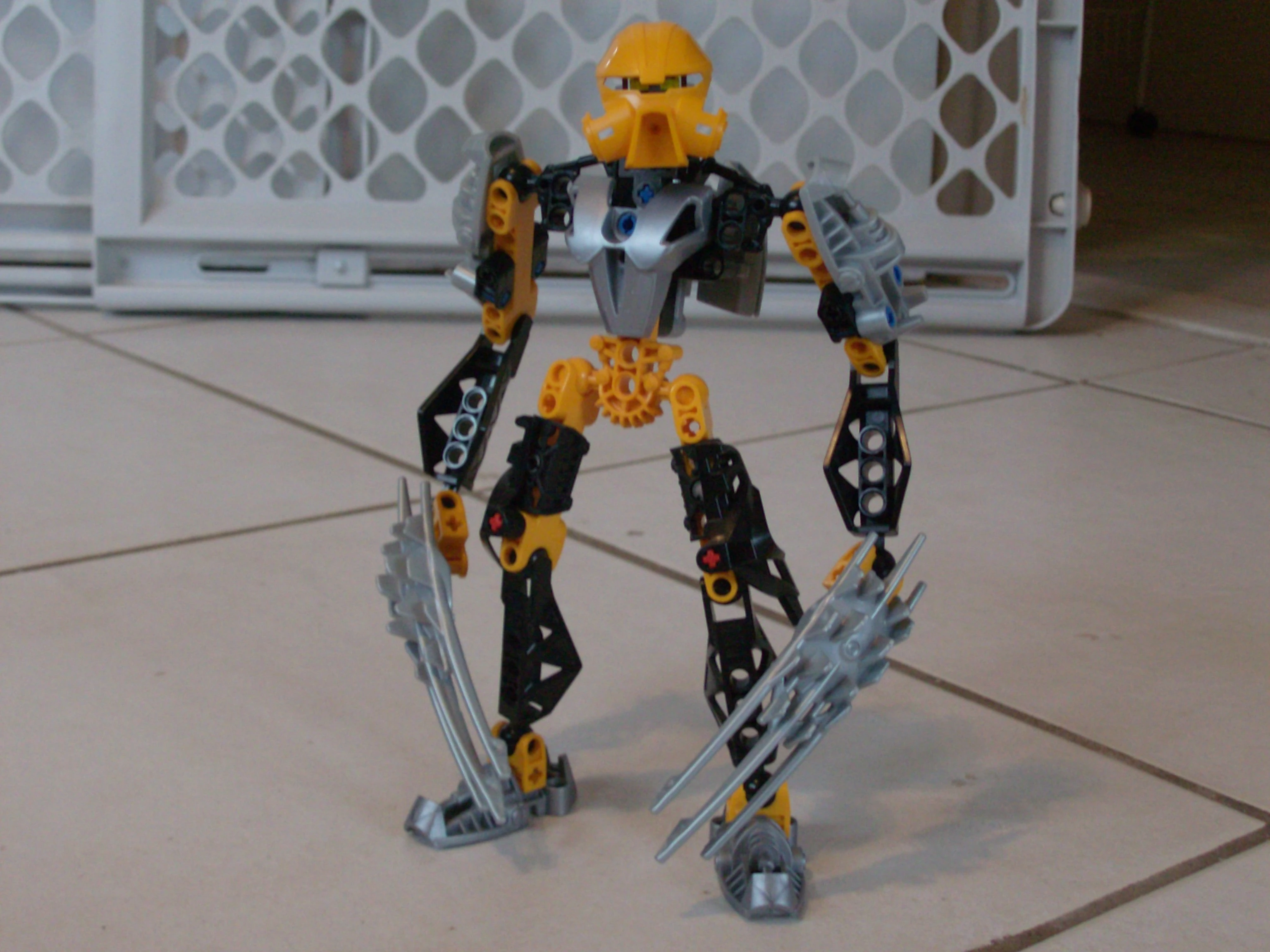 A tactical thinker, Shaza is capable of understanding a situation quickly. She is very quick witted and she can hold her own against almost any adversary, though she is often impulsive. Though a little stubborn at times she is, overall, a loyal person and true friend. Due to an injury of some sort several years ago, Shaza's armor is colored yellow, black and silver over the normal white and blue generally adopted by Toa of Lightning.