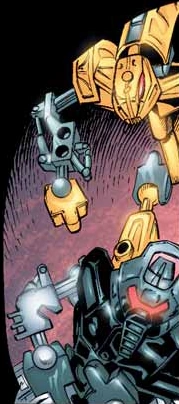 When the Toa Metru retrieved all six Disks, they traveled with their respective Matoran to the Great Furnace to confront the Morbuzakh. With the Toa soon finding themselves overpowered, the Matoran were forced to fend for themselves using Kanoka Disks to limited effect. Proposing that the Matoran join forces, Tehutti recounted an ancient stone tablet he had once stumbled upon in the Archives, detailing the formation of a Matoran Fusion. Joining hands, Tehutti was able to form a powerful mental link with his five compatriots, allowing them to merge into one and form the first Matoran Nui seen in Metru Nui for 100,000 years. As such, the Kaita staved off the Morbuzakh long enough for the Toa to escape down to the Great Furnace and confront the King Root. Once the Toa had entered the central chamber and the immediate threat of Morbuzakh vines had been dealt with, the Matoran Nui defused and Tehutti remarked the exhilarating rush of power he had felt. From this unique vantage point, he witnessed the defeat of the King Root and the subsequent destruction of the Morbuzakh across Metru Nui.