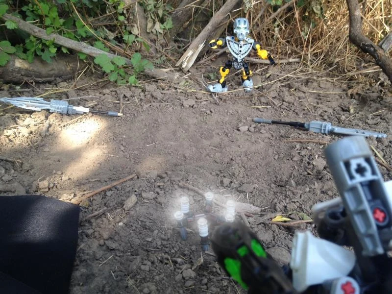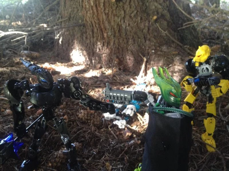 "That's where you're wrong," Keelo replied, and he raised his hand into the air. Vandir, Merdana, Hatar and four Matoran armed with blasters arose from behind the roots of a large tree, all weapons aimed right at him. Detras knew what he had to do and that he would be alright, but he still had a tingling sensation that things were bad for him.