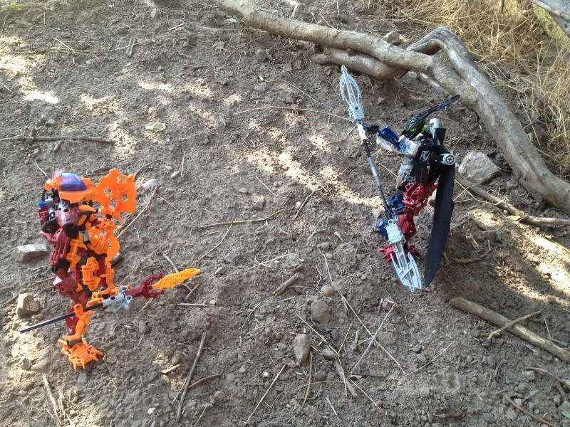 Keelo lost his grip, flying backward and breaking a large root in a flurry of disturbed dust. He slowly stood up, first starting to dust his armor off before starting to stumble towards Detras. After falling onto his knees beside the Toa of Fire, he expected him to make a move of some sort, but he didn't do anything.