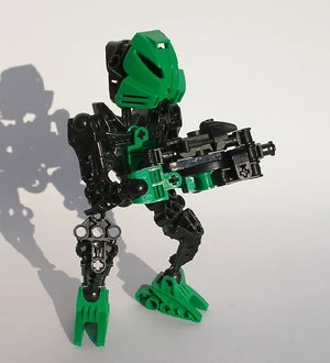 Very unhappy about the disunion, Viretha banded together with Leshar and left to seek out the Patriots once more. They sound found a marching trail leading them to a long-abandoned road, where they waited for their former gorup to arrive. They met up with two of the team who were send out as scouts, Vastara and Kyhae, and together they explored further. They soon found a strange alcove, seemingly constructed to be an arena which was overgrown with all kinds of foliage. In the center of said arena were strange apparatuses, which the group decided to investigate. This however, alerted Nuva who had assembled his full force of Forgotten Warriors, with Viretha and her team being greatly outnumbered. The Matoran tried to hold her ground in the attack, but her light blaster was soon destroyed by one of the attackers. Another damaged her armor and flung a few bio to the ground, when yet another Forgotten Warrior destroyed Viretha's machinery.