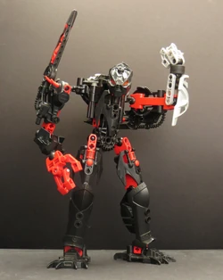 Like all Skrall, he is faster and stronger than most other beings on Spherus Magna, with strength near that of a Toa. However he is not as durable as them. And while he has the heightened intelligence of a Special forces Skrall, he doesn't have the strength of them. This odd mix of traits have the other Skrall somewhat uncertain of his abilities. His secondary color of chose is the typical red among the warrior rank.